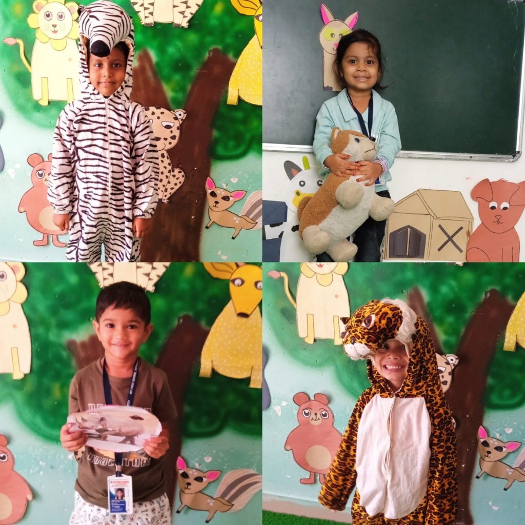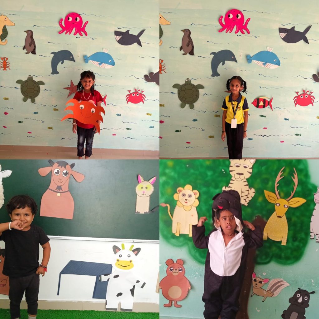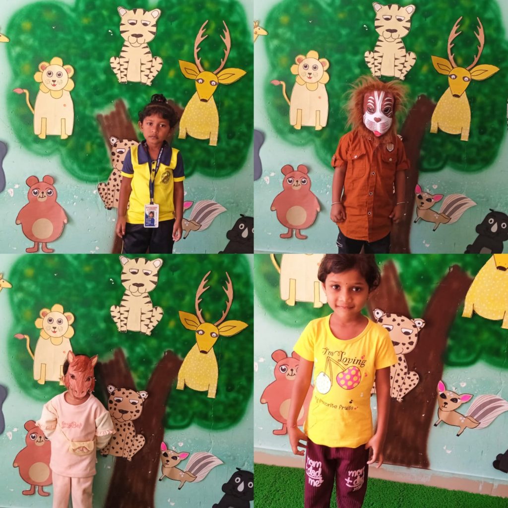 Our children are explaining the types and importance of animals while wearing different costumes.