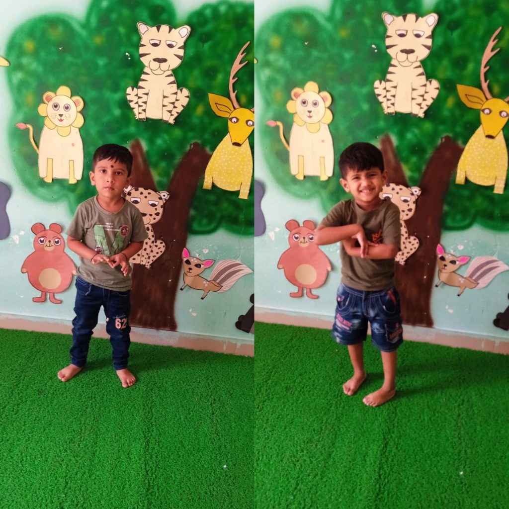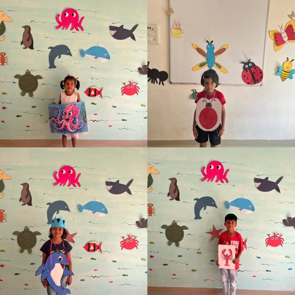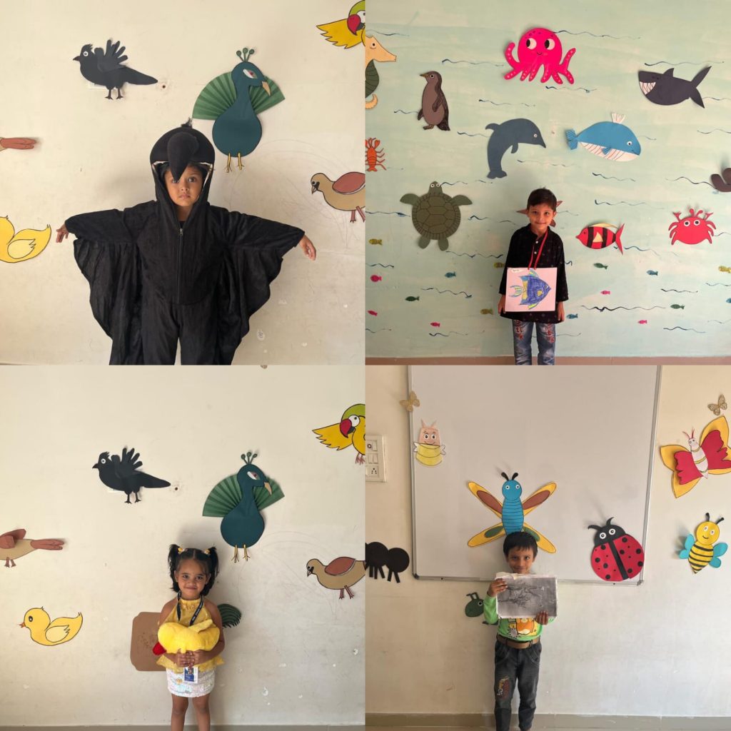 Our children are explaining the types and importance of animals while wearing different costumes.
